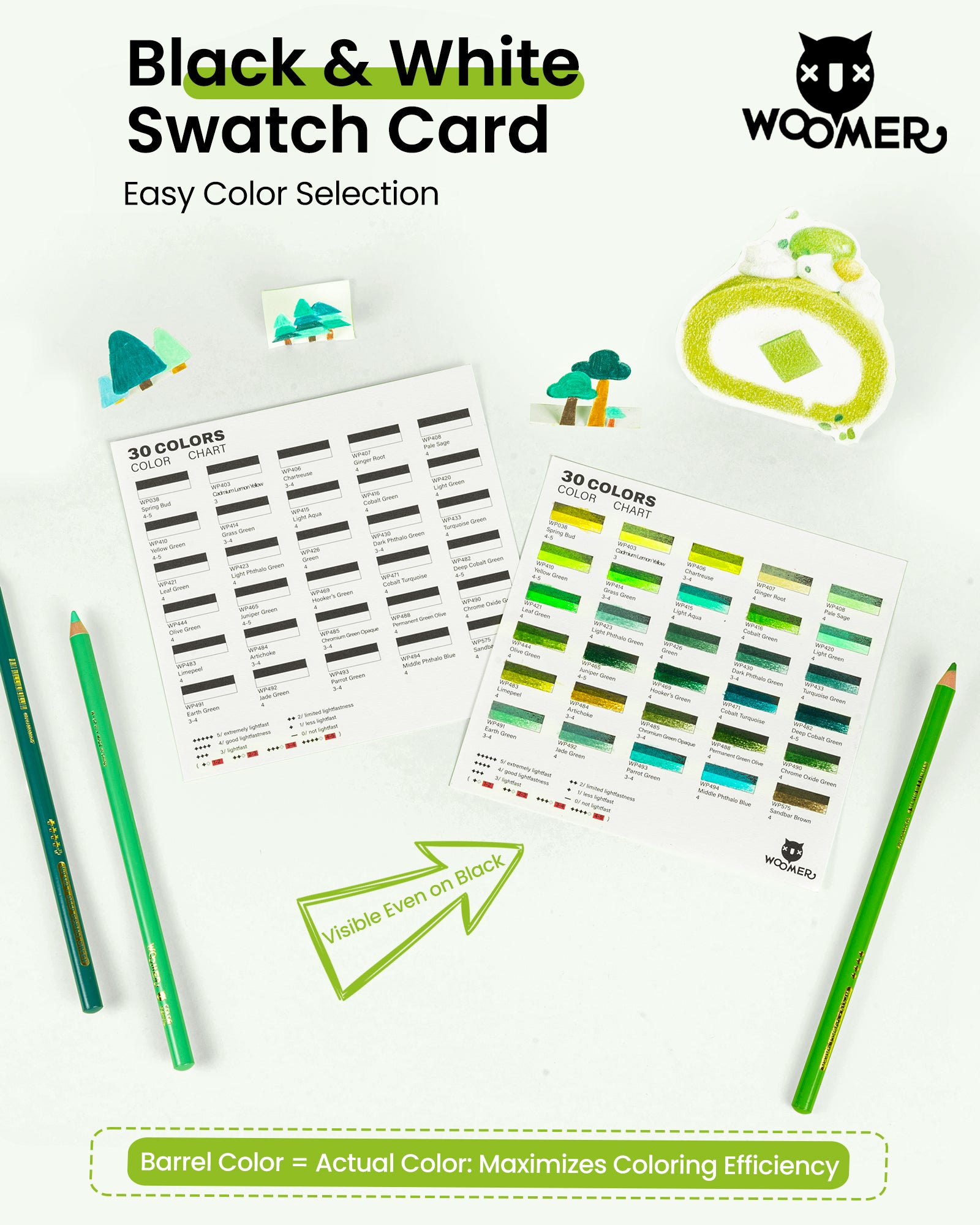 - 30 Curated Green Shades + Newly Developed Premium Grays! Ready to draw out of the box, from tender shoot green to vintage moss green, master all natural green tones easily